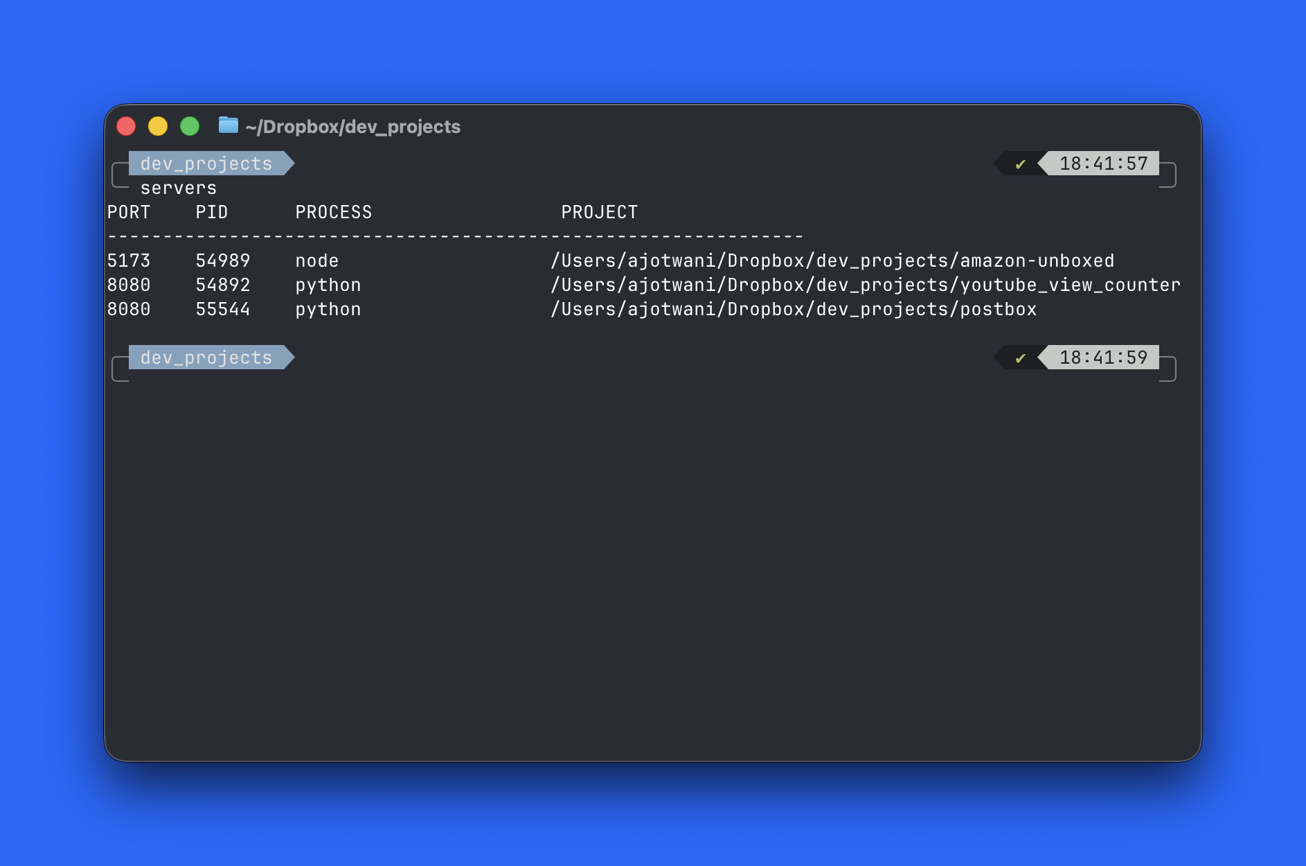 I sometimes have a few projects going at the same time. Most of them are running some kind of server. And at some point, one of them won’t start because a port is already taken.